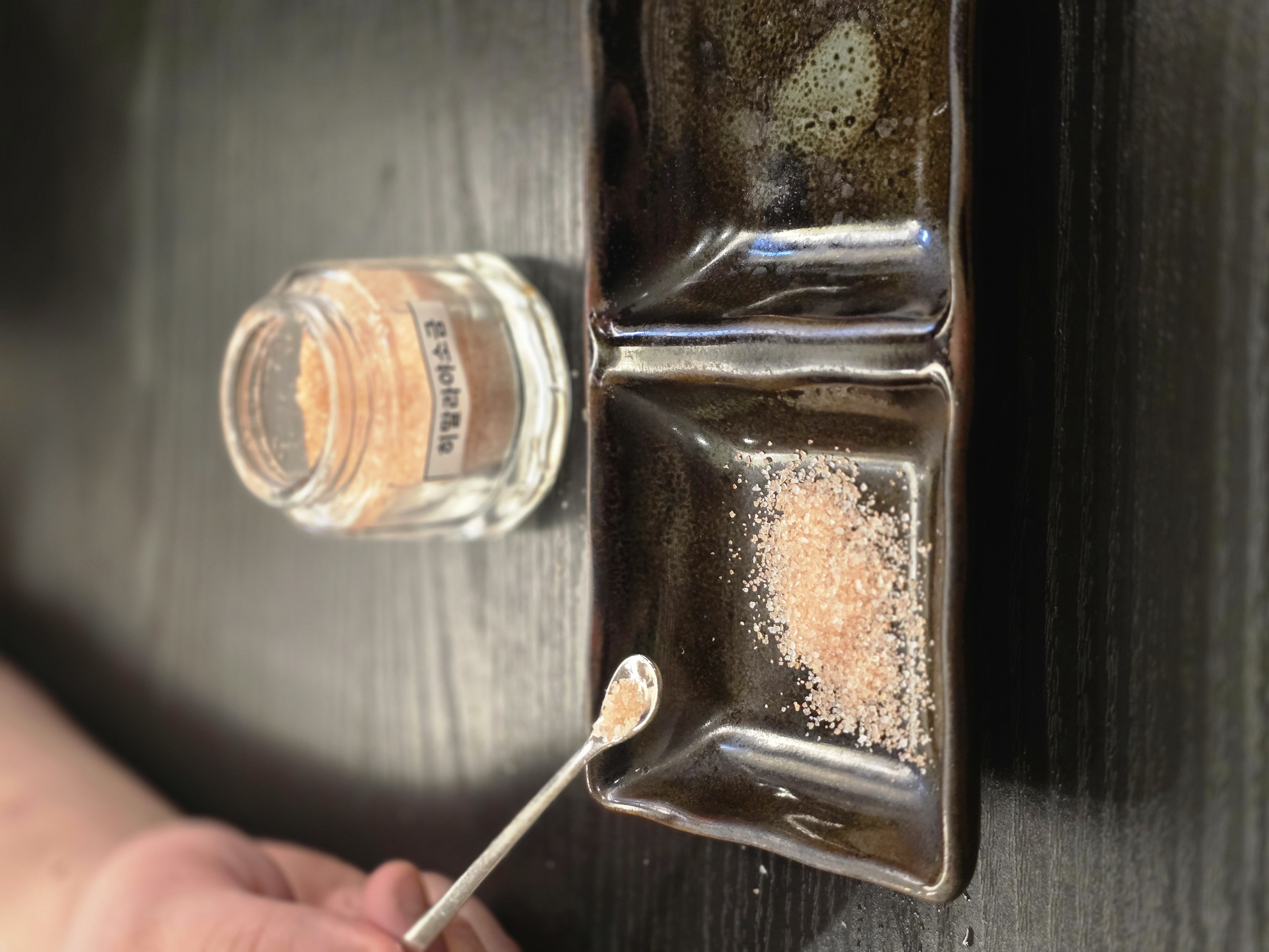 음식 기다리면서 핑크솔트랑 돈까스 소스도 먼저 덜어뒀어요!!