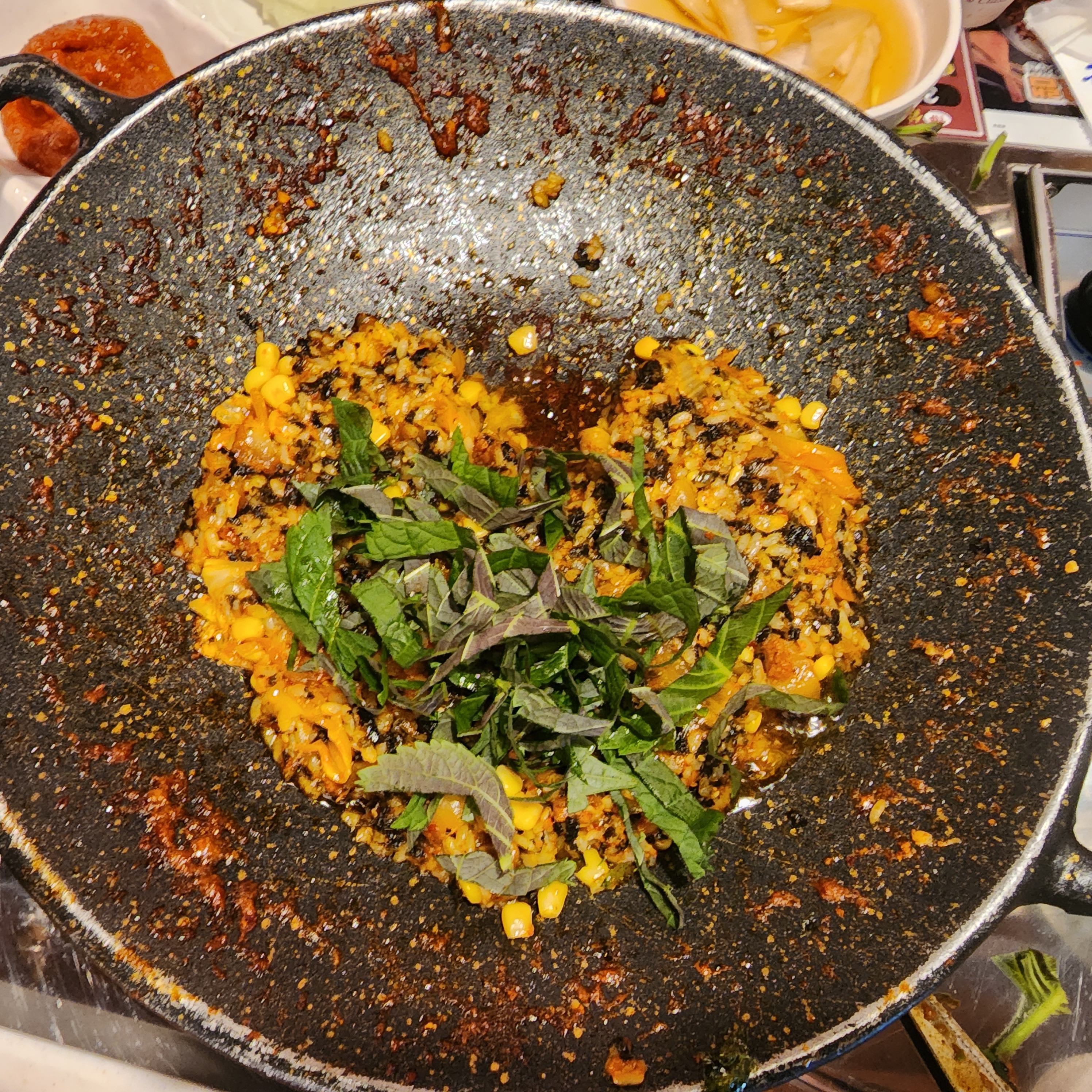 달달 볶다가 마무리로 깻잎으로 데코! ㅎㅎ 세상에 볶음밥도 진짜 너무 맛도리였어요 !!